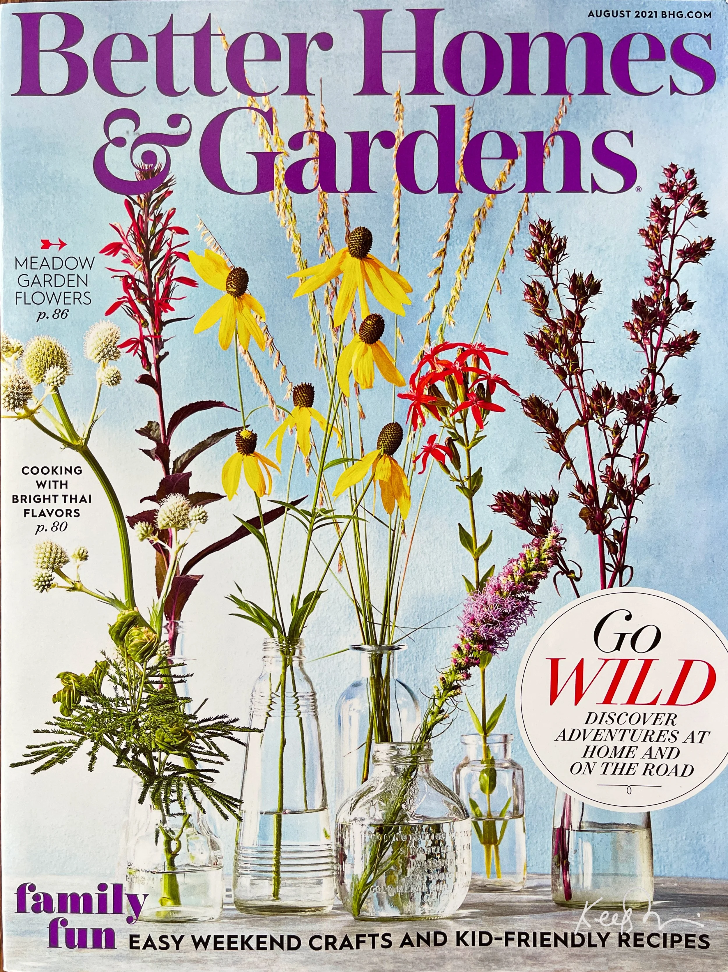 Kelly’s front yard meadow is featured in a sumptuously photographed article and on the cover of the August 2021 issue.